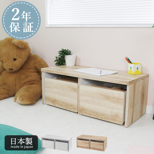 おもちゃ 収納 日本製 引き出し ( 幅90 奥行40.5 高さ38センチ )( 木製 木目部分:プリント紙化粧繊維板 白色部分:強化プリント紙化粧繊維板 汚れ防止加工 キャスター付 き 国産 ) ベンチ型 収納 ベンチ チェスト こども用 机 たんす
