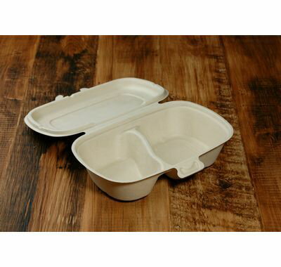 モールド容器 DKP-7 仕切り有り(サイズ 本体236×155×高さ44mm/18mm)フタを閉じた時の高さ75mm紙 弁当 サラダ カフェ おしゃれ エコ 業務用 使い捨て テイクアウト