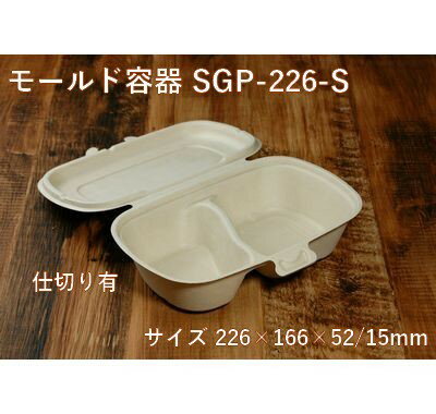 モールド容器 SGP-226 -S 仕切り有り(サイズ 本体226×166×高さ52mm/15mm)フタを閉じた時の高さ67mm紙 弁当 サラダ カフェ おしゃれ エコ 業務用 使い捨て テイクアウト