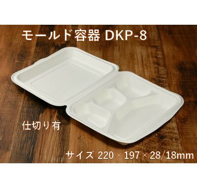 モールド容器 DKP-8 仕切り有り(サイズ 本体220×197×高さ28mm/18mm)フタを閉じた時の高さ46mm紙 弁当 サラダ カフェ おしゃれ エコ 業務用 使い捨て テイクアウト