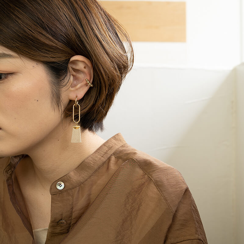 beige detail 艶のあるメッキ加工されたピアスです。