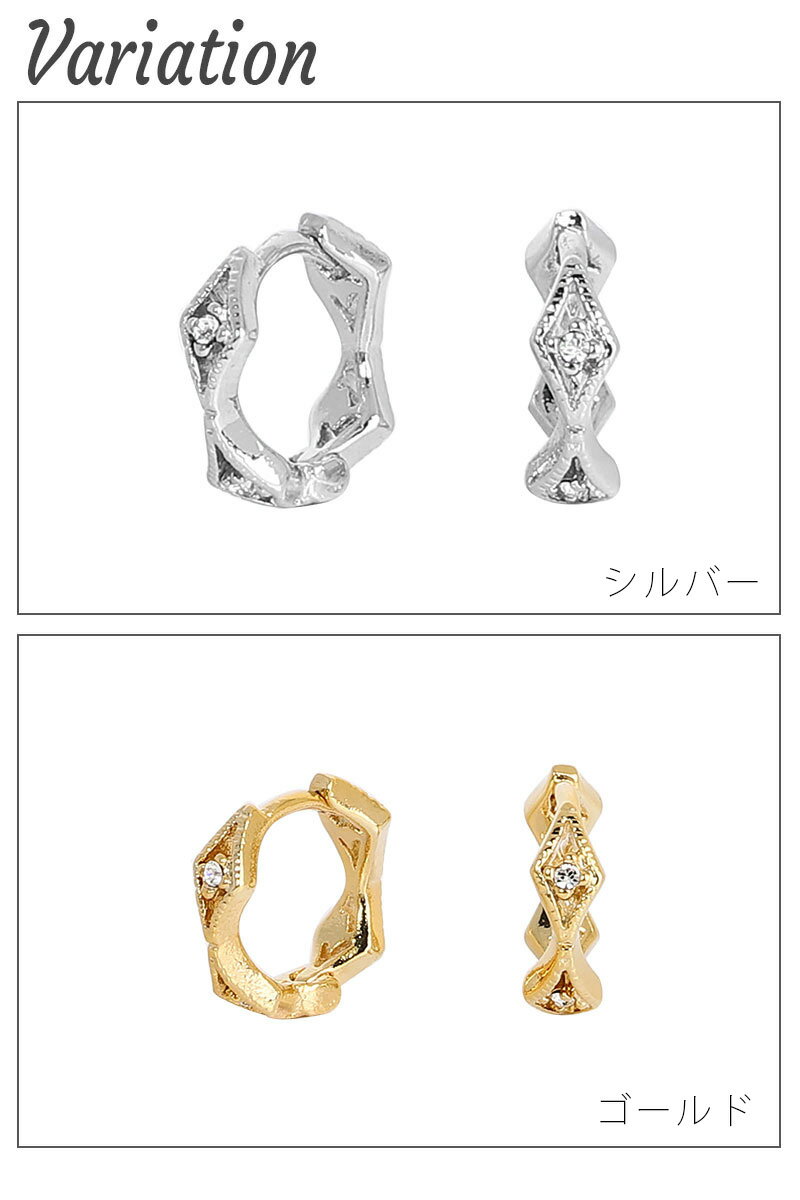 フープピアス レディース ニッケルフリー スワロフスキー 日本製 ウェーブ ひし形 お肌に優しい 金属アレルギー対応 ワンタッチ 簡単装着 小ぶり 小さめ シンプル おしゃれ 綺麗 上品 清楚 カジュアル フォーマル 記念日 誕生日 プレゼント ギフト メール便送料無料